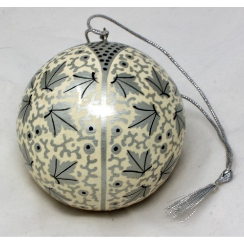- Product Code: Small 2" Papier-mâché Bauble - Chinar Silver on White