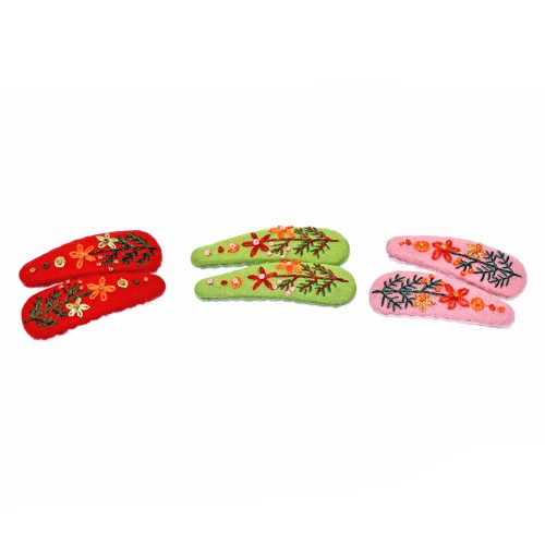Pack of 6 hand embroidered hair clips featuring a flower design. Made by a women's group in Bangladesh.