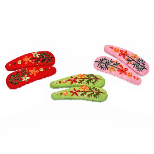 • Product Code: Hand Embroidered Floral Hair Clips - Flowers