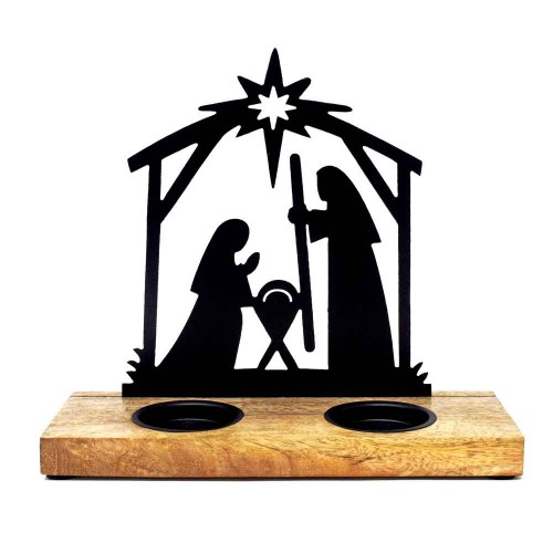Metal Nativity Tealight Holder with Wooden Base-Medium (pk 4)