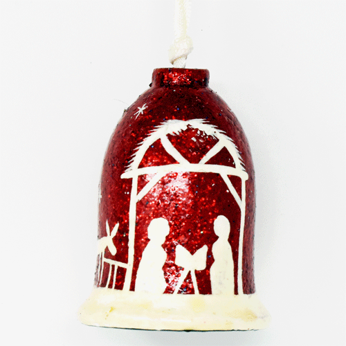 Small Painted Bell - Nativity - Glitter Red