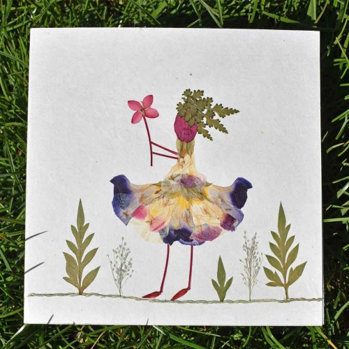 Pack of 6 handmade greeting cards created using pressed flowers by skilled artisans in the Philippines. Card features a fairy flower design on paper made from recycled agricultural waste materials. Card left blank inside. Plastic free.