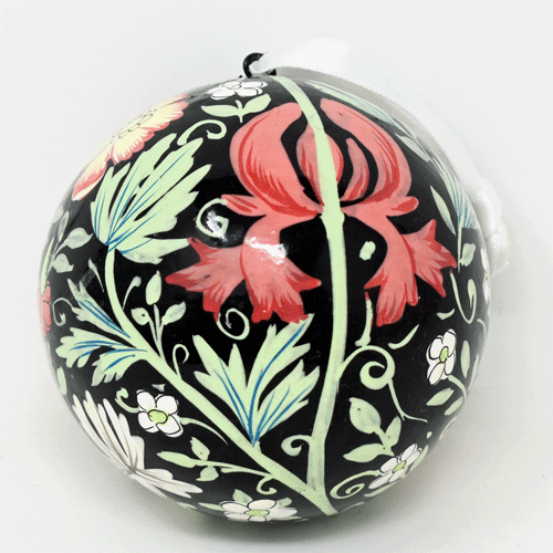 Large 3" Papier-mâché Bauble - Floral on Black