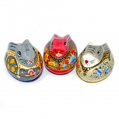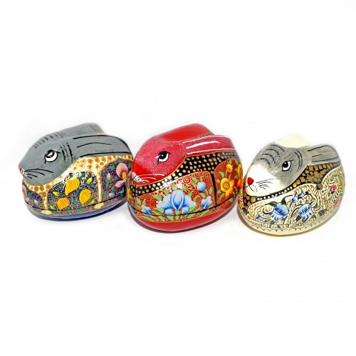 Hand painted papier-mâché rabbit boxes. Available in an assortment of traditional Kashmiri flower designs in various colours.