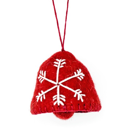 - Product Code: Felt Hanging Bells - Snowflake on Red (pack size - 6)