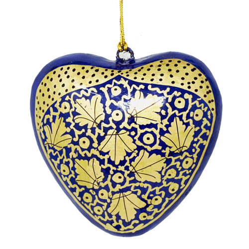 Pack of 12 hand painted blue papier-mâché hearts made in Kashmir featuring our most popular Kashmiri designs.