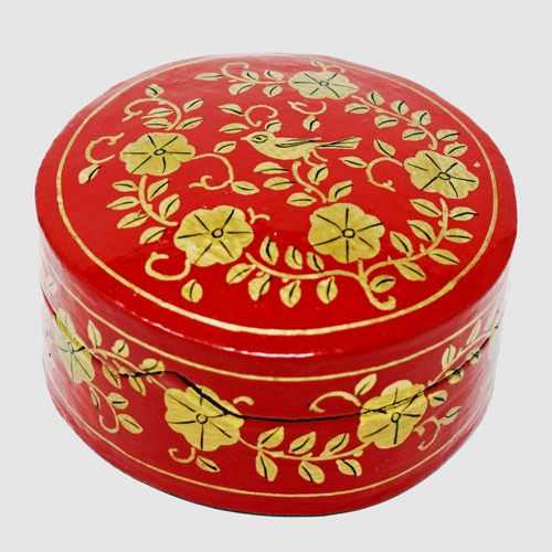 - Product Code: Papier-mâché Round Box - Birds in Branch (Small)